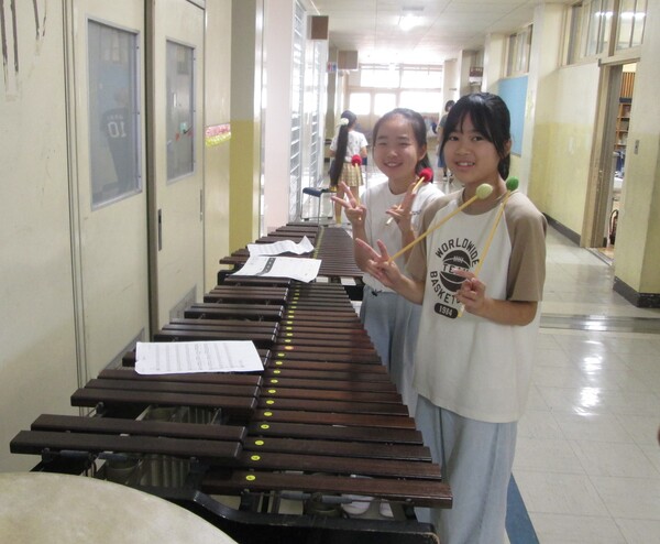 6年生の活動を眺めながら4階まで上がると、音楽の合奏練習をしていました。フレーズを意識して、表現したいこと(ゆったりとか、やさしくとか)をどのように演奏にするか(弱く?つながるように?)を話合いながら練習していました。