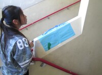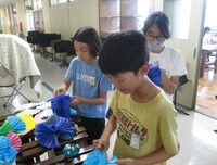 1時間目。いつもは静かな廊下から「ここがいいかな!あ!ここなんてどう?」ちょっと興奮気味の6年生の声が聞こえます。図工の「造形遊び」。学校中を飾るのだそうです。お花紙やスズランテープ、カラーセロハンを駆使して海や空を表現したり、感性が爆発するまま飾ったりしていました。