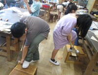 その向かい側では4年生がのこぎりギコギコ。汗を垂らしながら、髪の毛かきあげながら、せっせとのこぎりで木を切っていました。