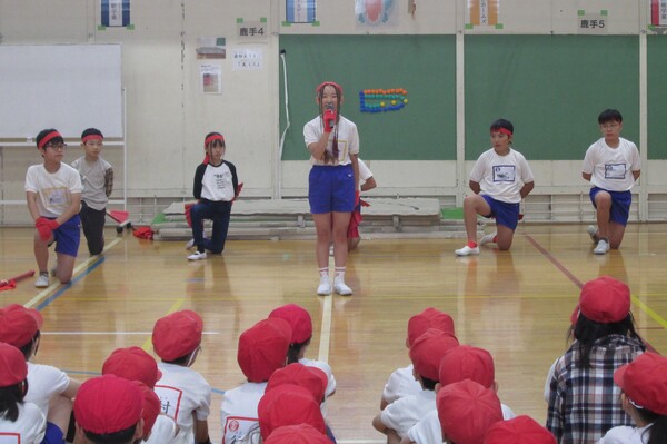 朝の時間に赤組だけが体育館に集合して初めての練習が行われましたが、応援団はしっかりセリフも動きも覚えて、待ち姿もばっちり決めて、全体を動かしていました。