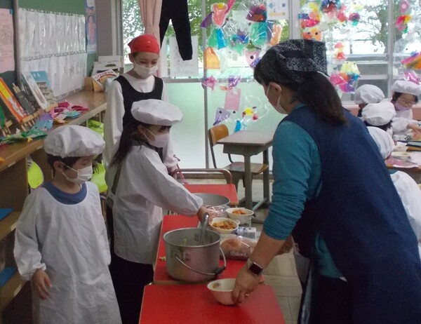 保育園と小学校の接続を滑らかにするためにお互いの指導を学び合うことが大切です。放課後は1年生の教員と、保育と教育の共通点と違いを明らかにして話し合ったり、教材を一緒に作ったりしました。