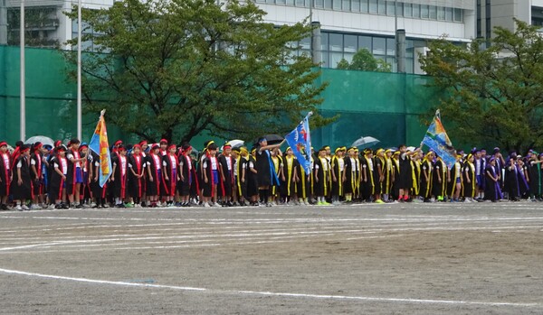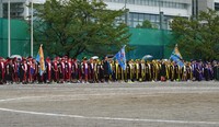 5年生の大里ソーランは、ピタッと止まった静けさからの入場、波の表現、力強い漁の様子、見事に表現していました。実行委員の「本輝!」という掛け声にこたえる団結力に感心しました。