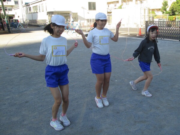 というわけで、今日のスポーツタイムは「短縄跳び」でしたが、2人でとぶ、3人でとぶなど、友達と力を合わせて楽しむ技を紹介してもらいました。