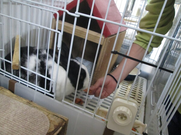 浦和大里小学校のウサギのココアちゃんは、みんなに大切にかわいがられて元気に過ごしています。
