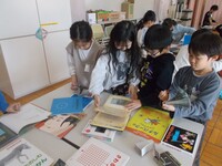 今日は、うらわ美術館の指導主事が「本の出張授業」として、2年生のために学校にたくさん本を持ってきてくださいました。