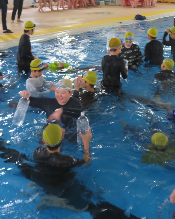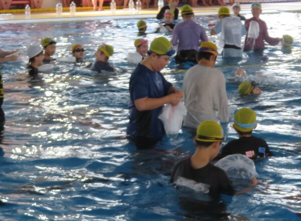 11月末に6年生の着衣泳にて今年度のプールが終了しました。着衣泳はプールの管理を行っているスタッフが指導してくださいました。