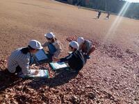 午前中は自然観察ビンゴです。 ビンゴカードには、きれいな色の葉を見付けること、生き物を見付けることなど、たくさんのお題が書いてあり、お題をクリアしてビンゴができるように、みんな一生懸命に活動していました。