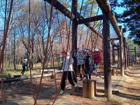 午後は冒険コースのアスレチック遊びです。普段見かけないようなアスレチックがたくさんありました。楽しく遊びながら、体力、腕力、バランス感覚など、いろいろな力が付きそうです。