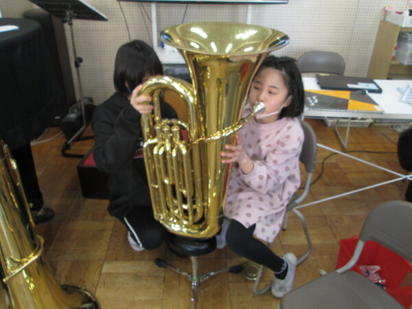 様々な楽器を体験し、「わたしはこの楽器をやりたいな」などと話していました。