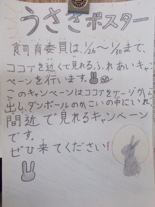 ココアはうさぎの名前で、大里小のアイドル的な存在です。