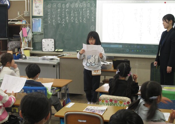 幼稚園の先生を見つけて「あ!」と驚いた顔をした1年生に「〇〇先生だよ」と笑顔で手を振る姿をみました。「何でここに幼稚園の先生がいるのだろう?」と不思議そうな表情でした。
