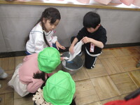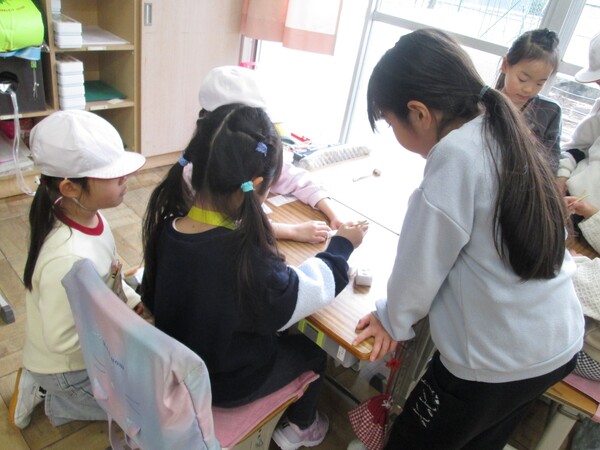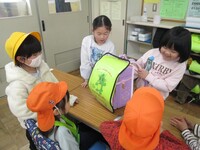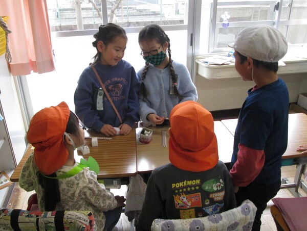 お掃除の仕方、給食の準備の仕方、ランドセルのしまい方、お箸の使い方、鉛筆の持ち方、○×クイズなど、自分たちで教え方を工夫していました。