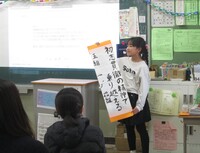 5年生は、学校にかかわる地域の方の組織であるスクールサポートネットワークにおいて、総合的な学習の時間の取組の紹介を行い、授業参観にぜひ来ていただきたいと宣伝をしたため、今日は保護者の皆様に交じって10人以上の地域の方も参加し、子どもたちの発表をきいてくださいました。