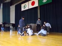 校舎内の様子を見てみると、あちらこちらで一列に並んでいる子たちがいます。先生に怒られているのかなと心配しましたが、そうではありません。