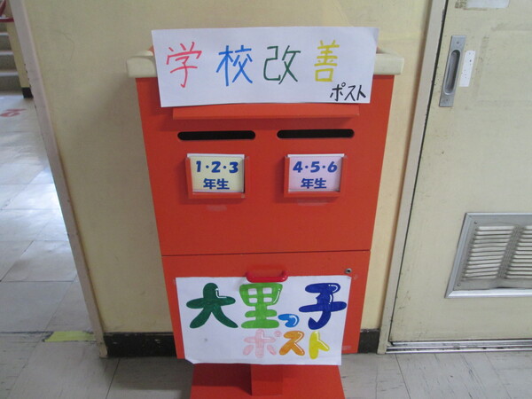 校内を歩いていると、代表委員会が活用している「いいところポスト」が「学校改善ポスト」と名前を変えていました。学校改善のアイディアを子どもが発信できるようにしたのかな。「自分の学校は自分たちの手で」の意識が子どもたちにも浸透してきました。