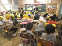 教室をのぞくと、自己紹介をしているクラスや自己紹介カードを作っているクラスが多くありました。スピーチでは、ちょっぴり緊張している様子でした。