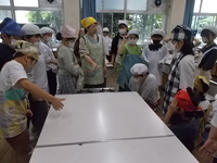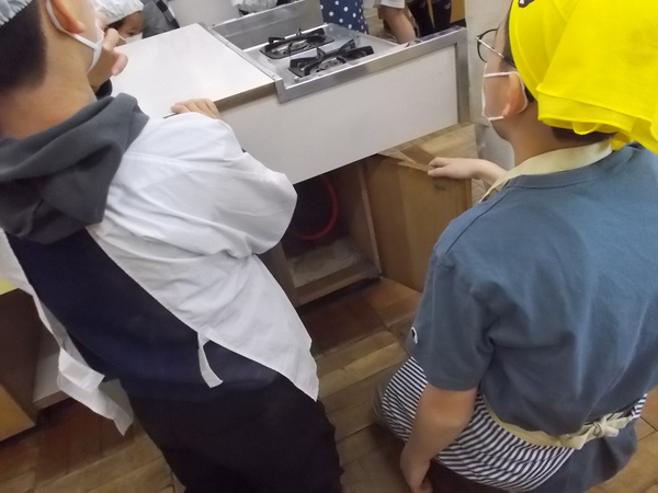 調理の前に、家庭科室の使い方を教わっていました。